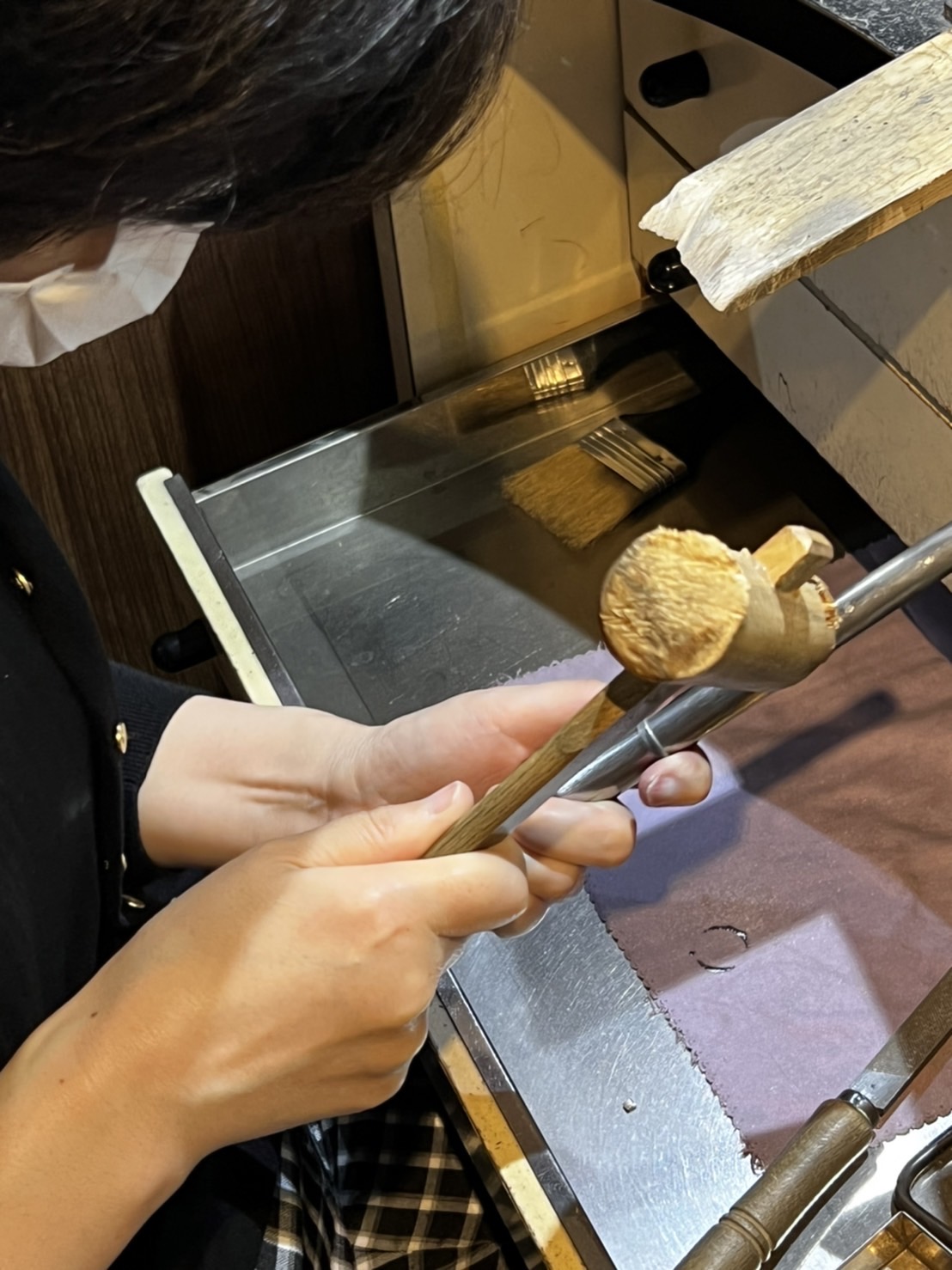 普段はデスクワークをされている会社員の女性のお客様。何か趣味を見つけたいと全くの初体験で、指輪を作ることに。