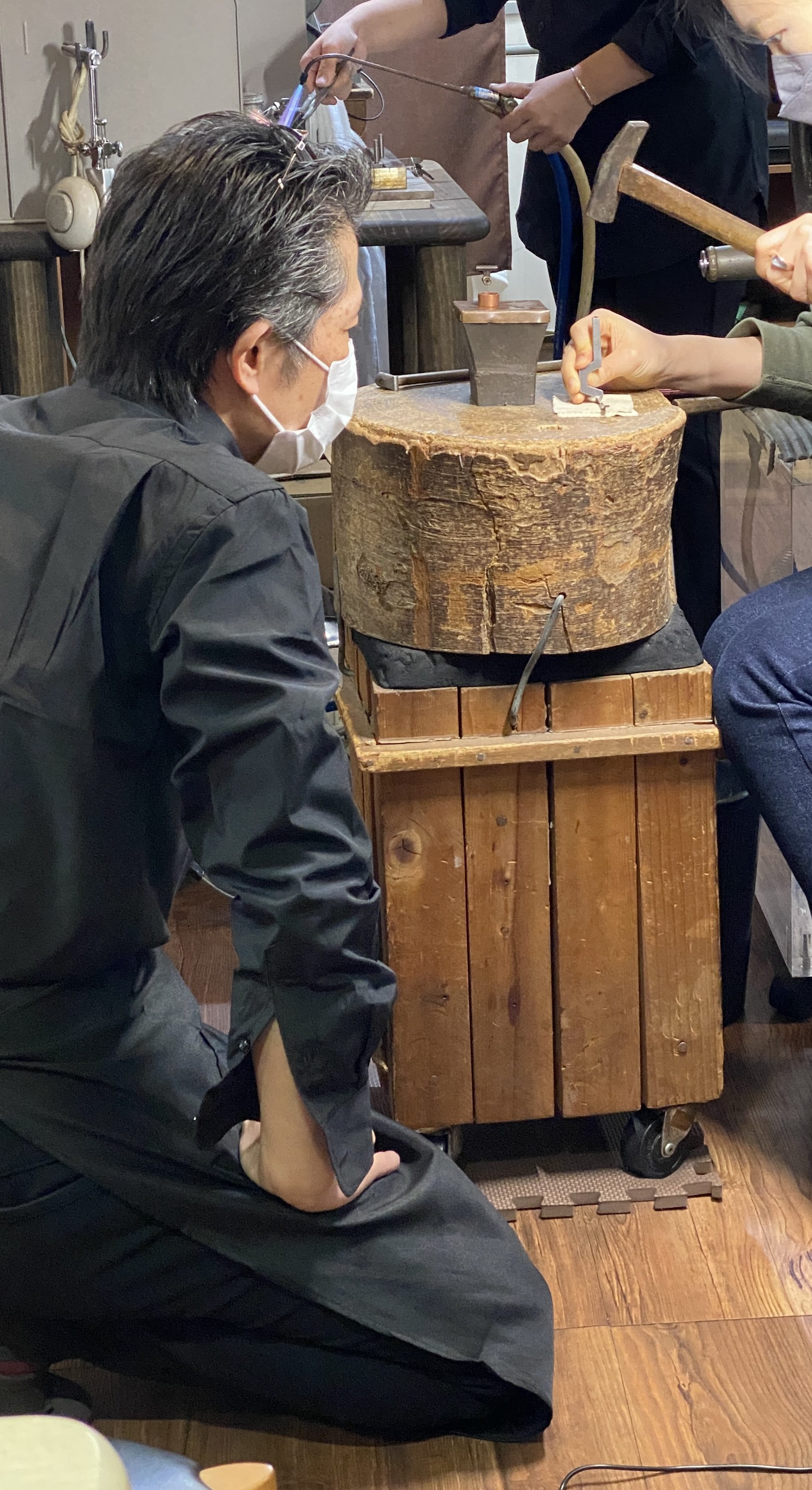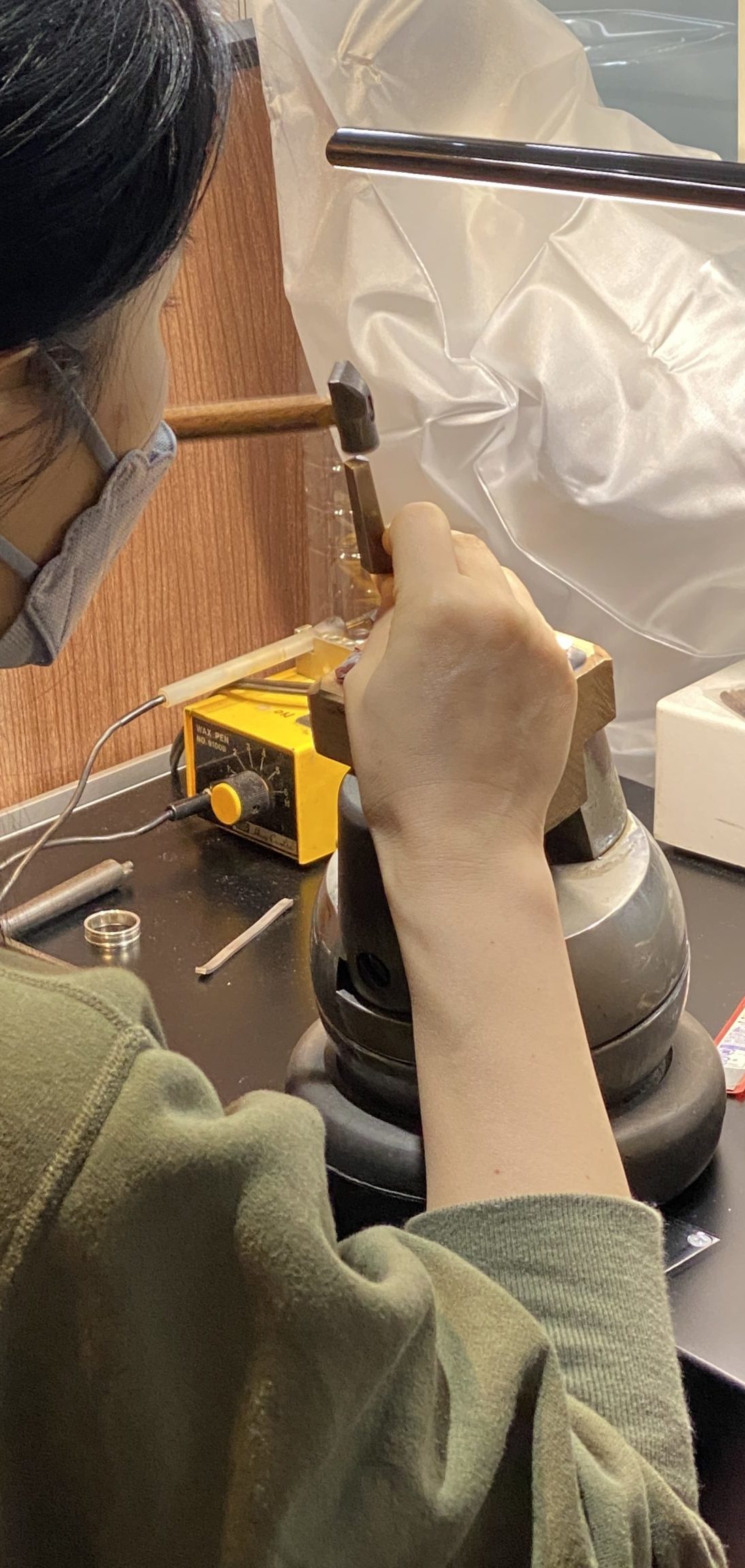 刻印の作業についてはやはり力の強さも関係もあり、また仕上げた製品に打つ際に失敗したらどうしようと思わず弱めに打ってしまい、刻印が甘くなってしまう~等もあり、この生徒さんの癖ややり方について話し合いながら進めていきました。